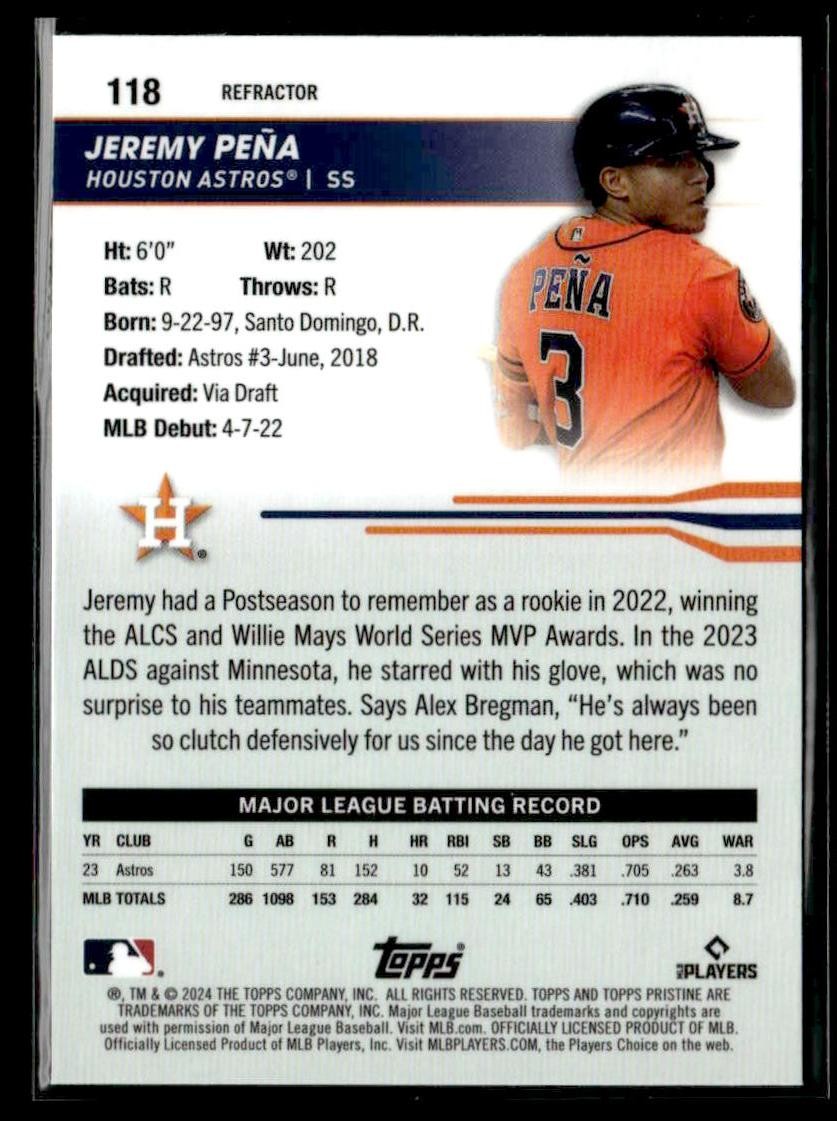 2024 Topps Pristine #118 Jeremy Peña Pristine Refractors