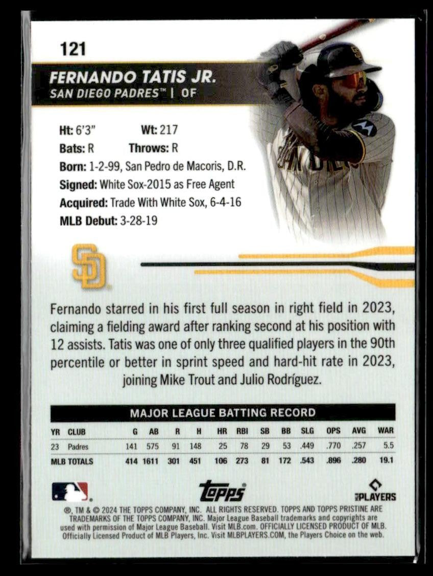 This is a sharp example of the 2024 Topps Pristine #121 featuring Fernando Tatis Jr..
