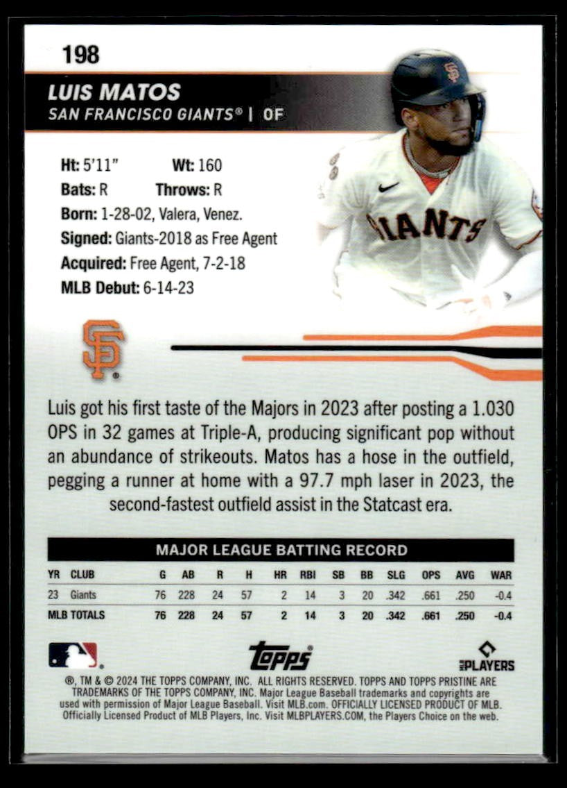 Luis Matos played for the San Francisco Giants in 2024, and this card is a standout from the Topps 2024 Topps Pristine release. Whether you're chasing rookies, SSPs, or building a premium collection, this card delivers.