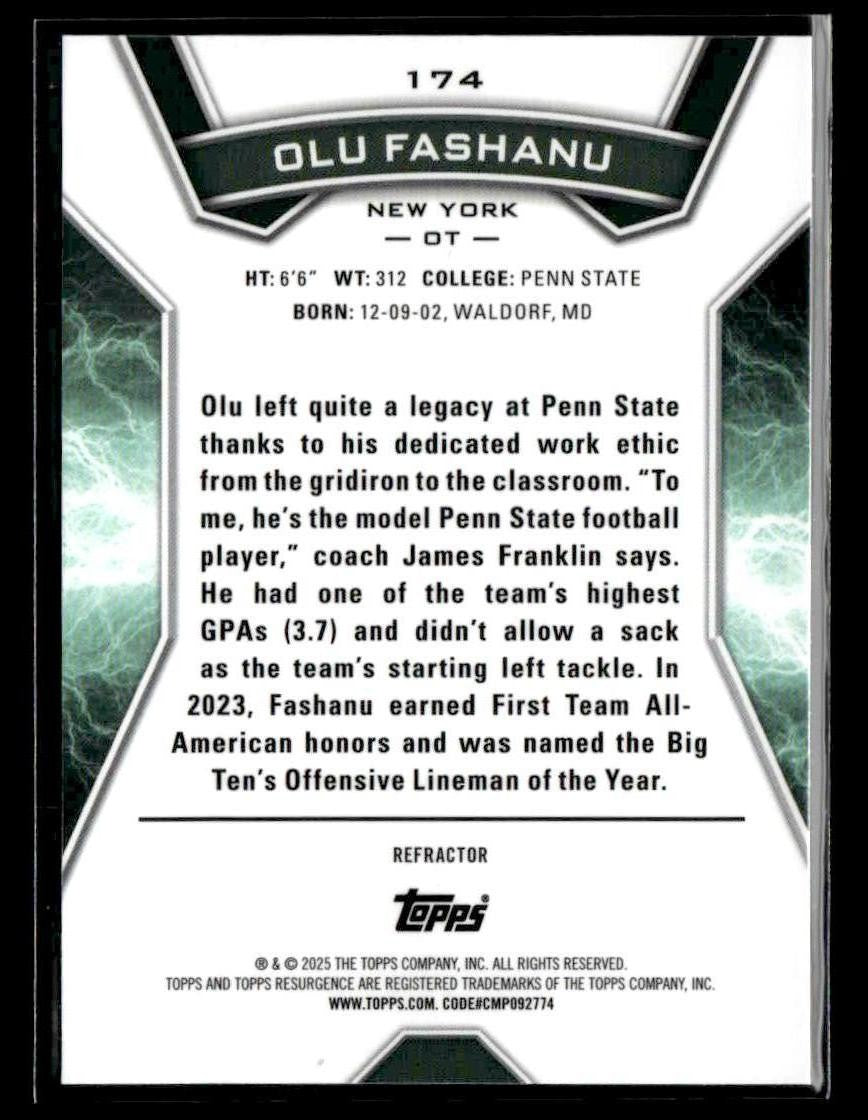 This is a sharp example of the 2024 Topps Resurgence #174 featuring Olu Fashanu.