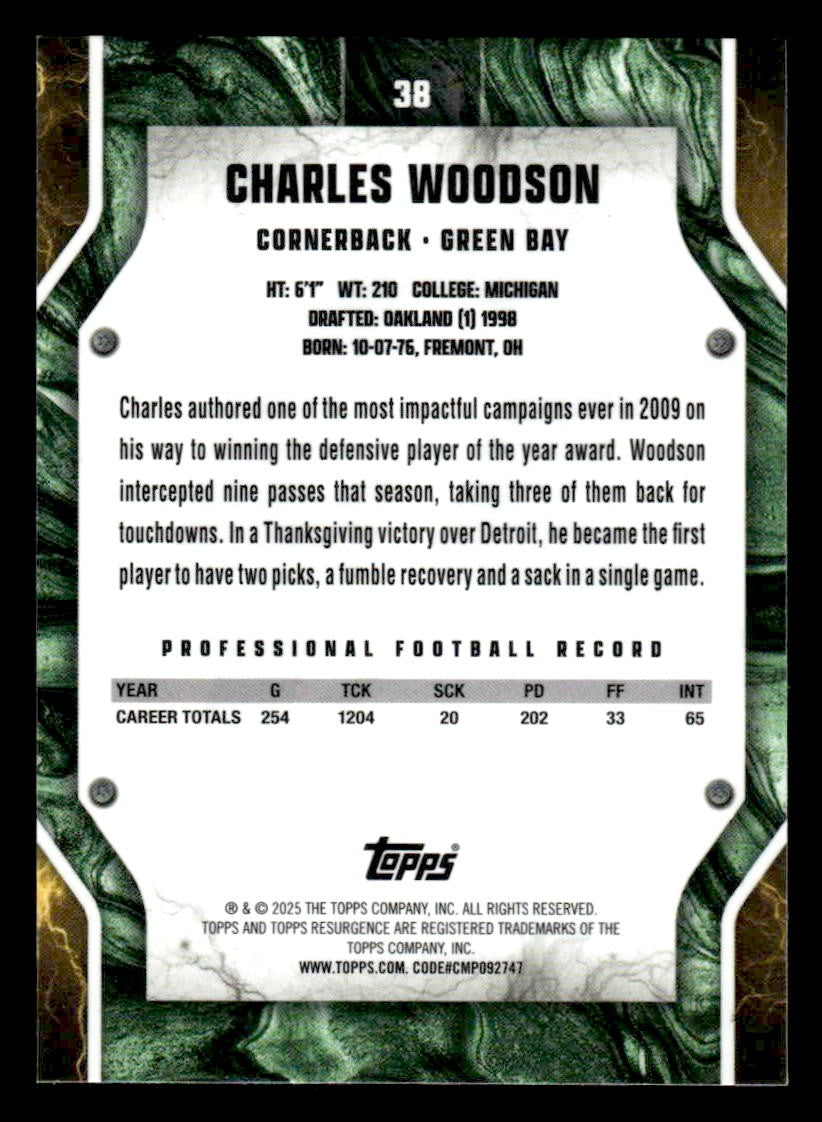 This is a sharp example of the 2024 Topps Resurgence #38 featuring Charles Woodson.
