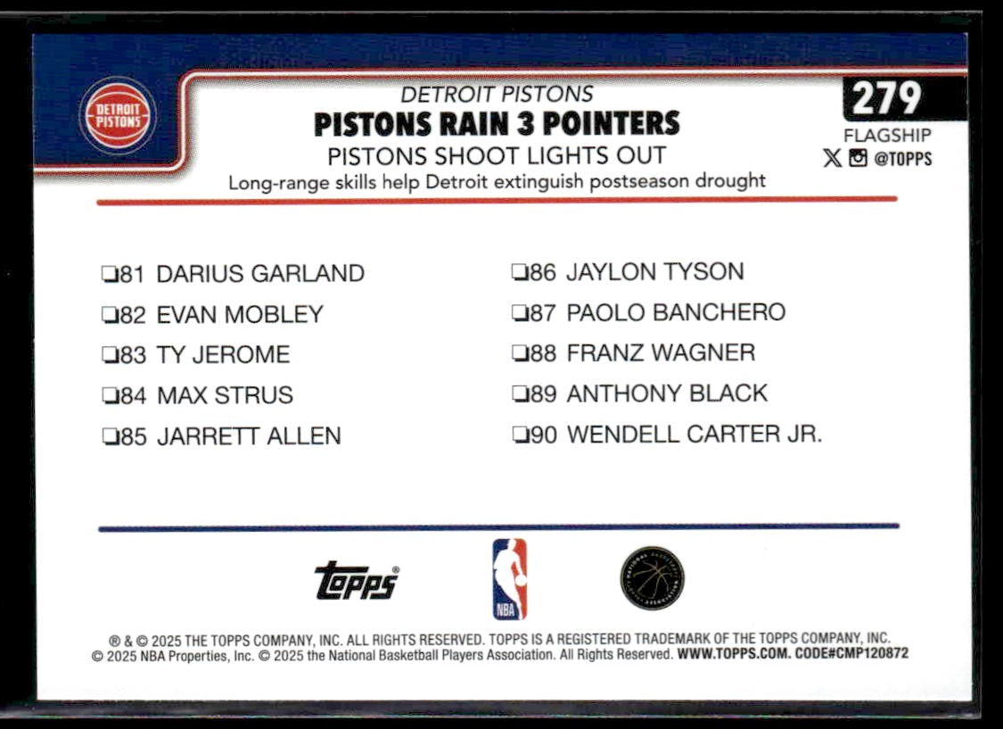2025-26 Topps #279 Pistons Rain 3 Pointers: Pistons Shoot Lights Out