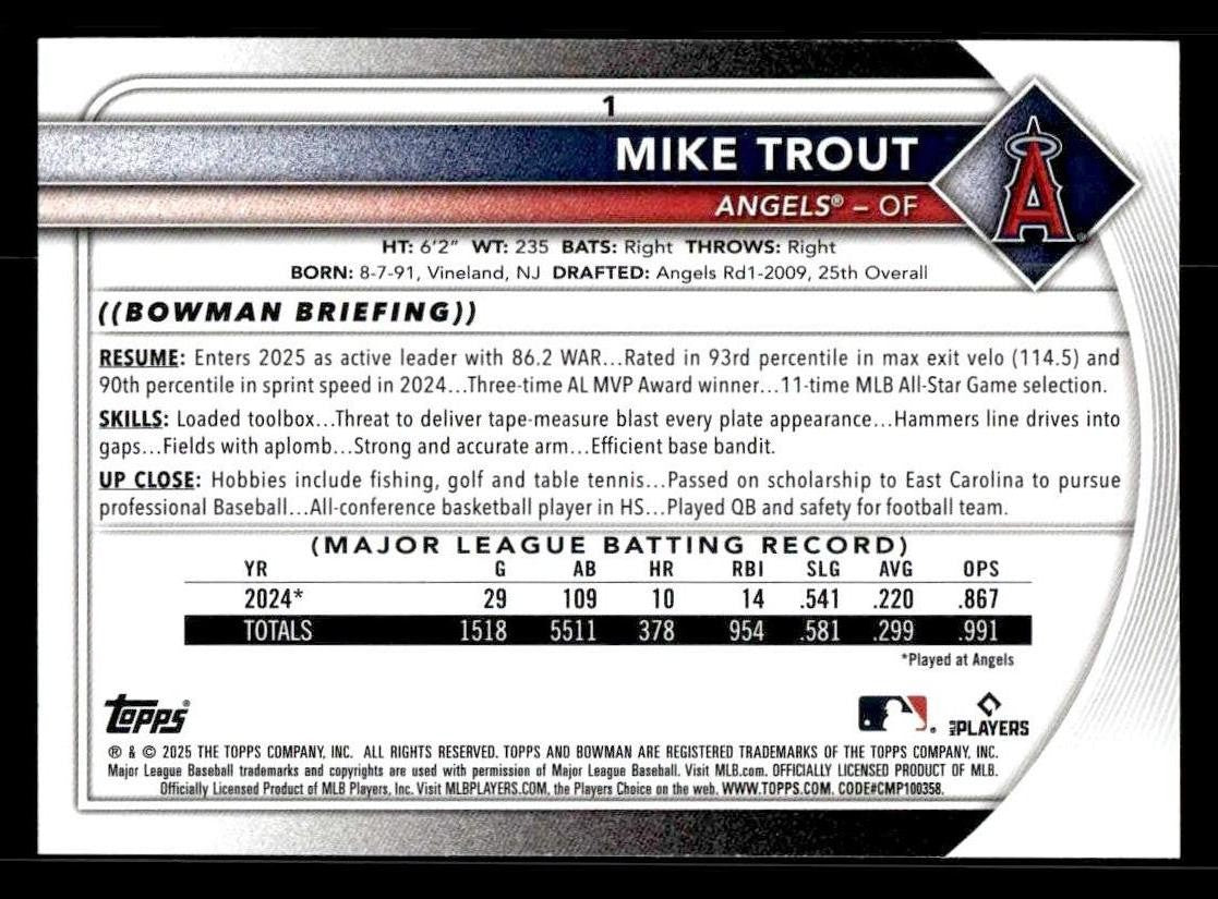 This is a nice example of a 2025 Bowman #1 Mike Trout