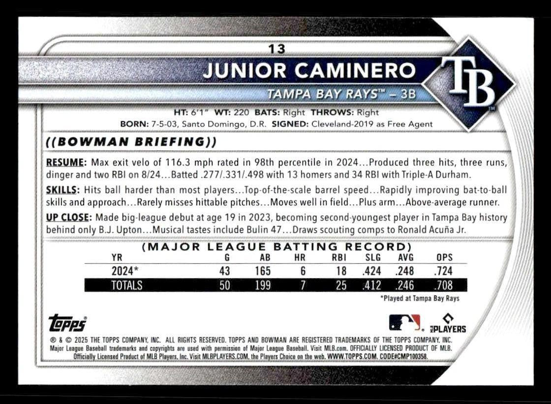 2025 Bowman #13 Junior Caminero
