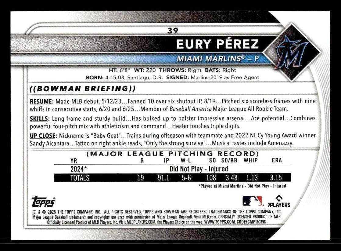 This is a nice example of a 2025 Bowman #39 Eury Pérez