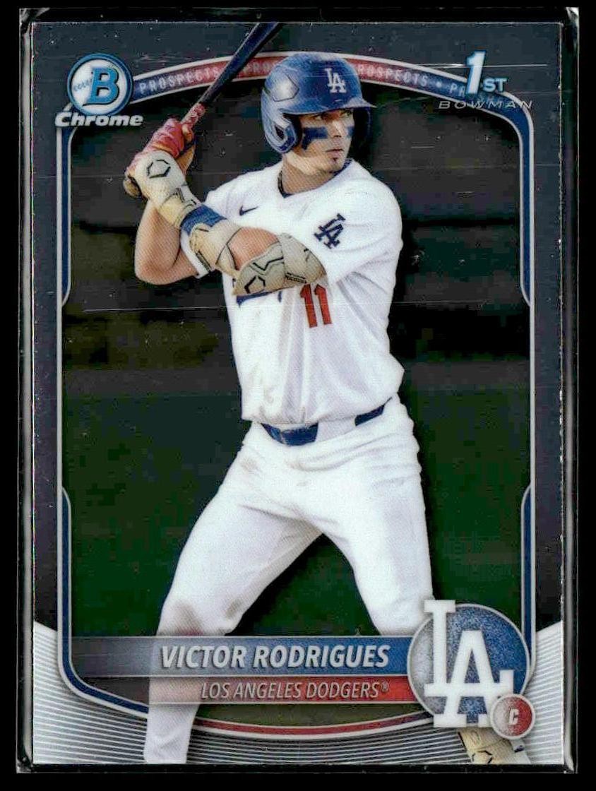 This is a nice example of a 2025 Bowman #BCP-45 Victor Rodrigues Chrome Prospects