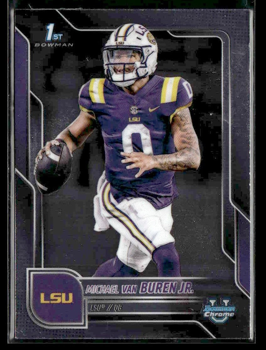 π₯ A premium trading card from the ο»Ώ 2025 Bowman University Chrome release featuring Michael Van Buren Jr. of the LSU Tigers.