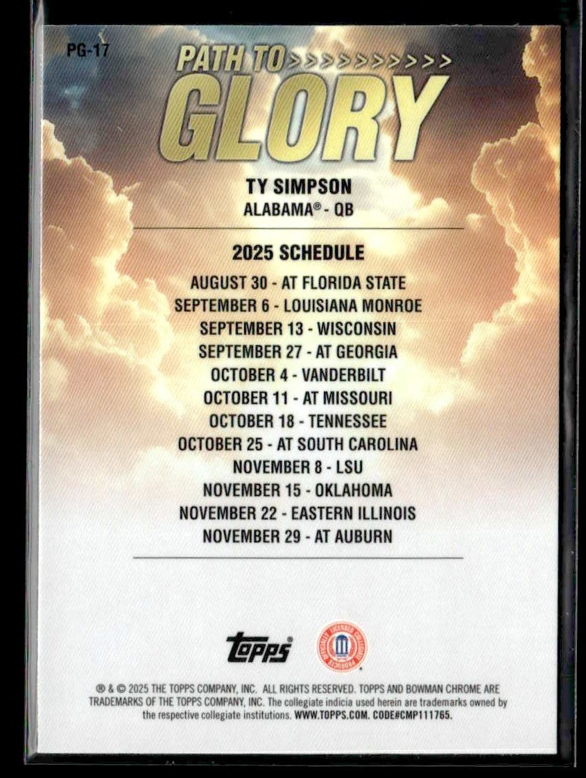 Ty Simpson β 2025 Bowman University Chrome Path to Glory #PG-17
