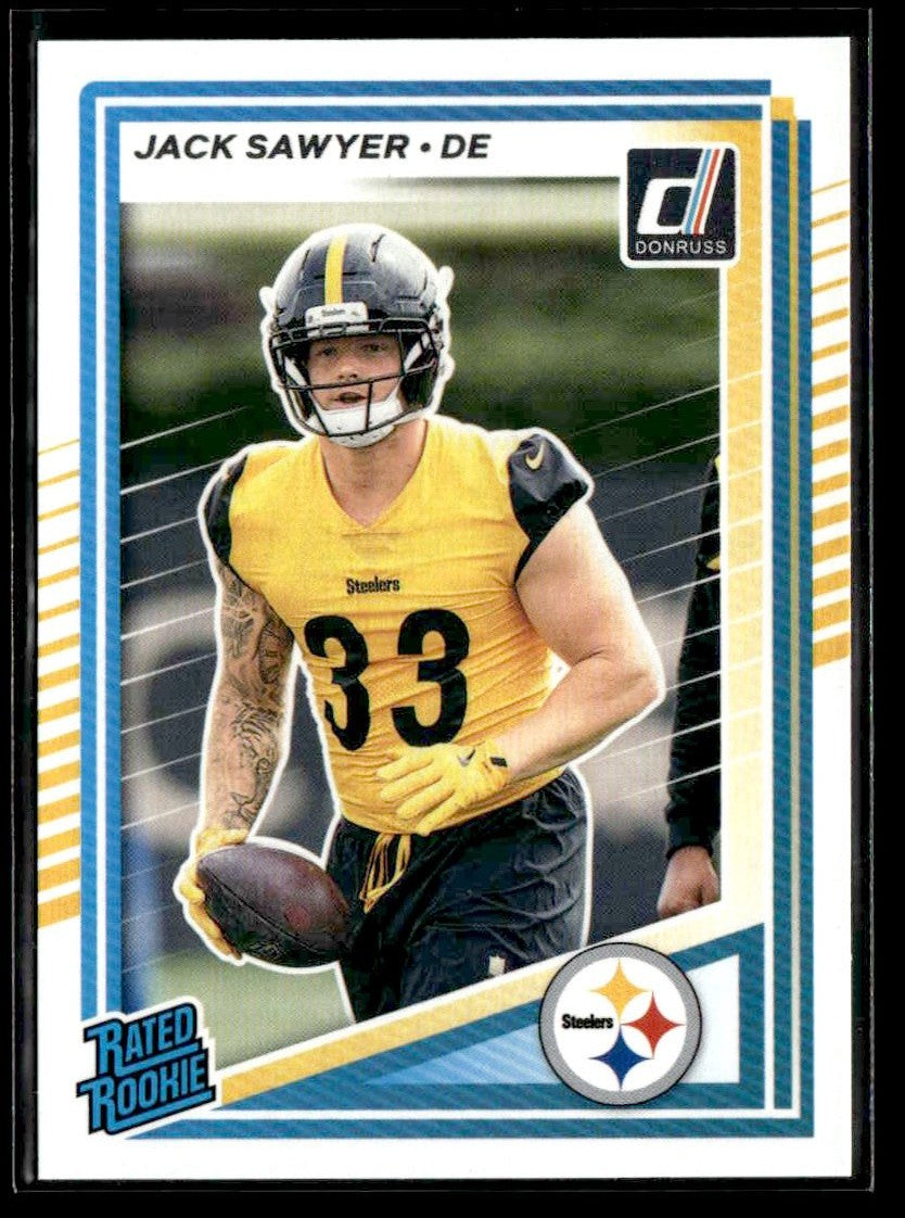 π₯ A premium trading card from the ο»Ώ 2025 Donruss release featuring Jack Sawyer of the Pittsburgh Steelers.