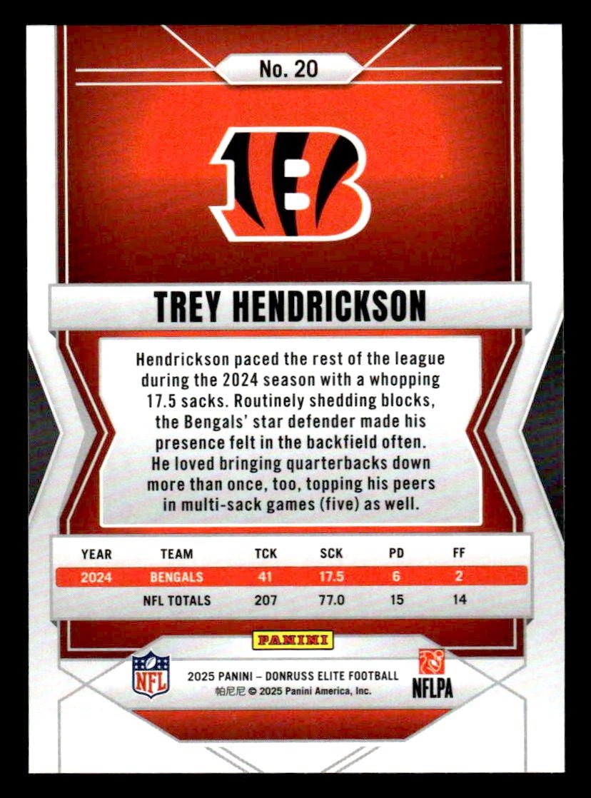 This is a sharp example of the 2025 Donruss Elite #20 featuring Trey Hendrickson.