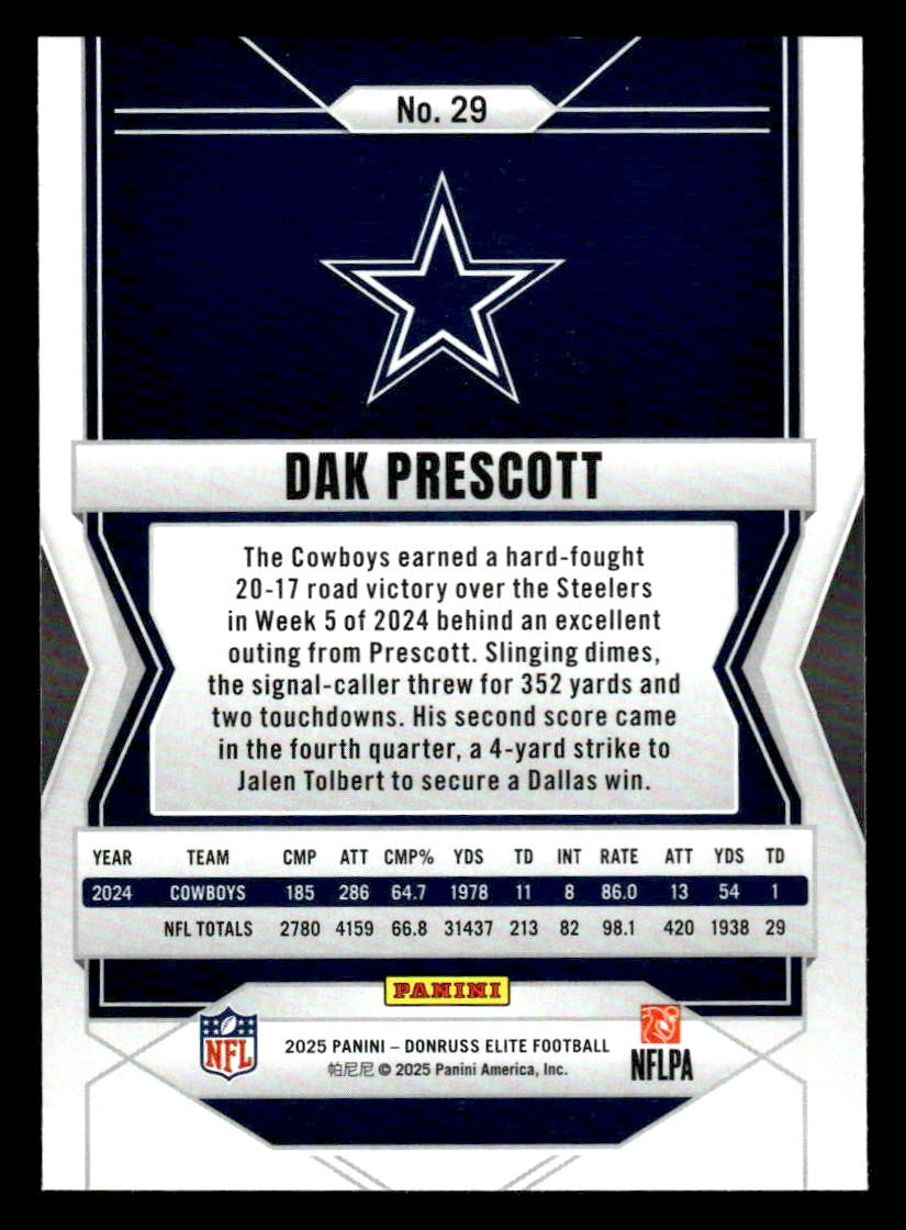 This is a sharp example of the 2025 Donruss Elite #29 featuring Dak Prescott.