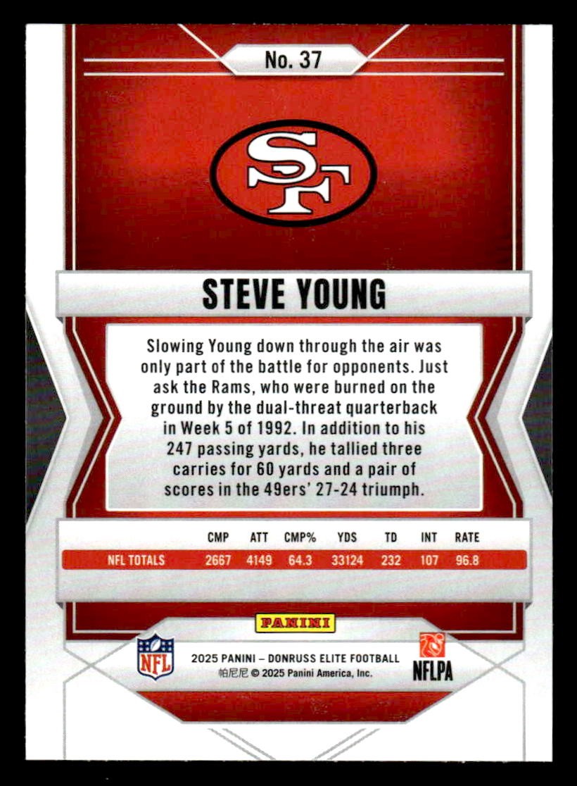 This is a sharp example of the 2025 Donruss Elite #37 featuring Steve Young.