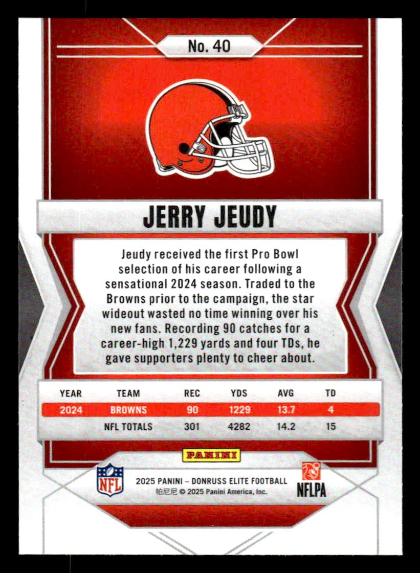 Jerry Jeudy played for the Cleveland Browns in 2025, and this card is a standout from the Donruss 2025 Donruss Elite release. Whether you're chasing rookies, SSPs, or building a premium collection, this card delivers.