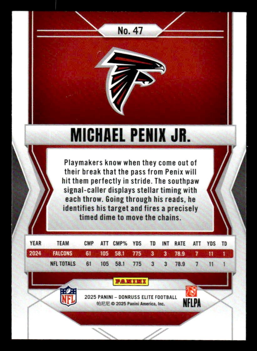 This is a sharp example of the 2025 Donruss Elite #47 featuring Michael Penix Jr..