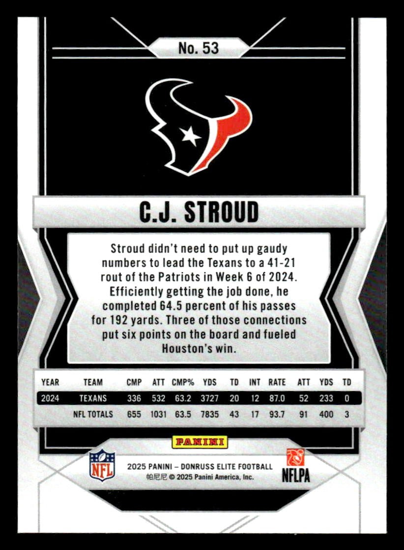 This is a sharp example of the 2025 Donruss Elite #53 featuring C.J. Stroud.