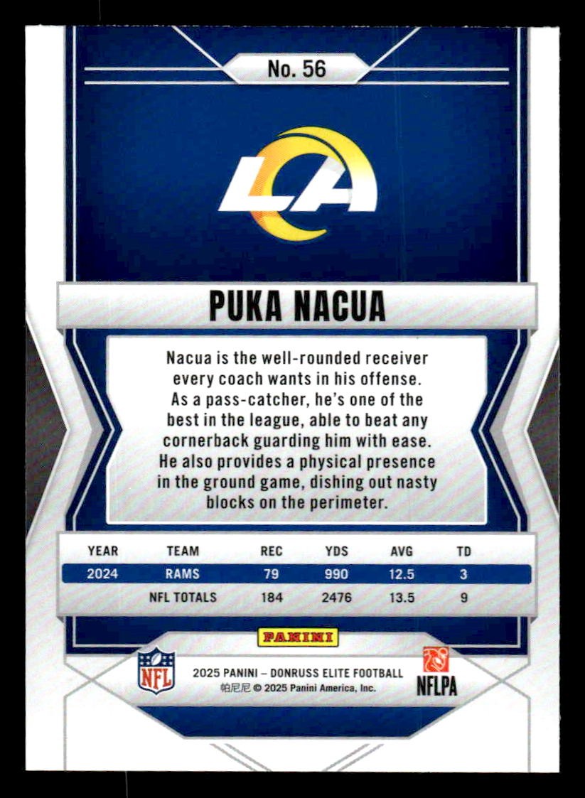 This is a sharp example of the 2025 Donruss Elite #56 featuring Puka Nacua.