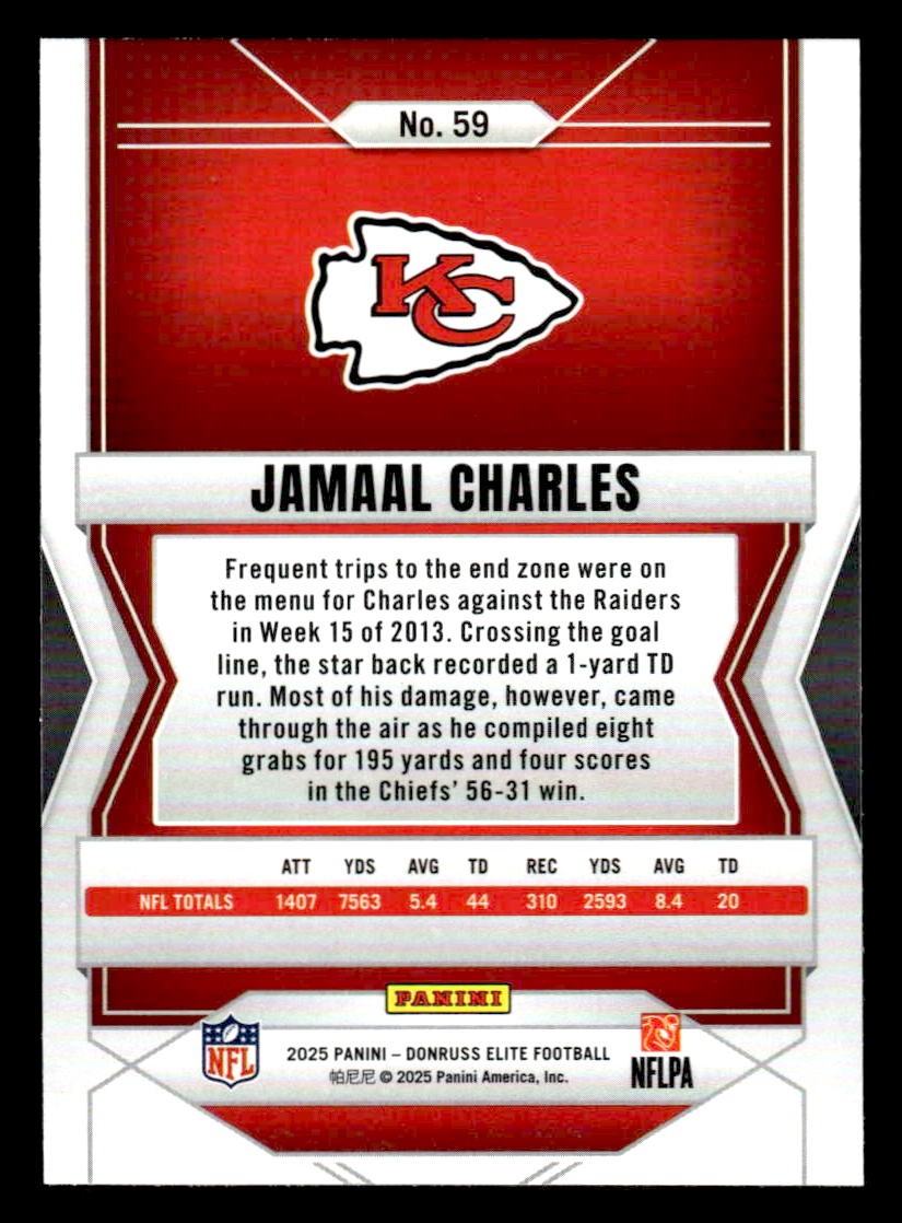 This is a sharp example of the 2025 Donruss Elite #59 featuring Jamaal Charles.