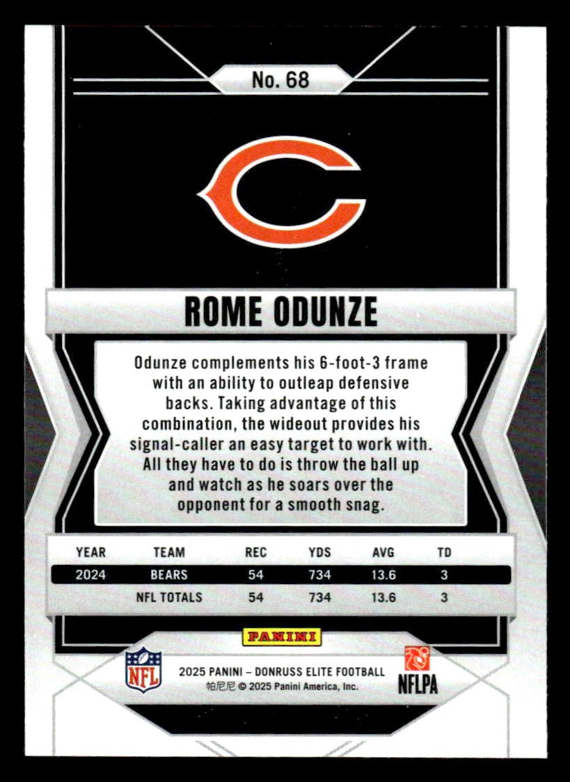 This is a sharp example of the 2025 Donruss Elite #68 featuring Rome Odunze.