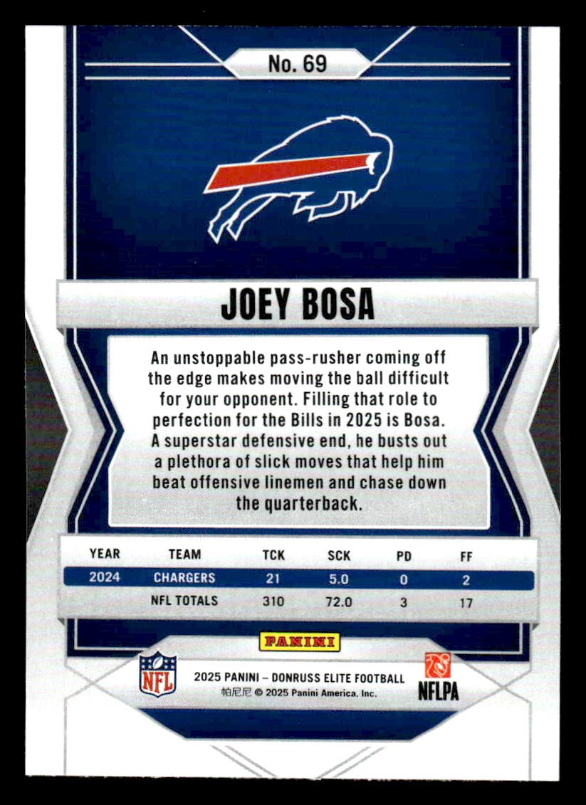 This is a sharp example of the 2025 Donruss Elite #69 featuring Joey Bosa.