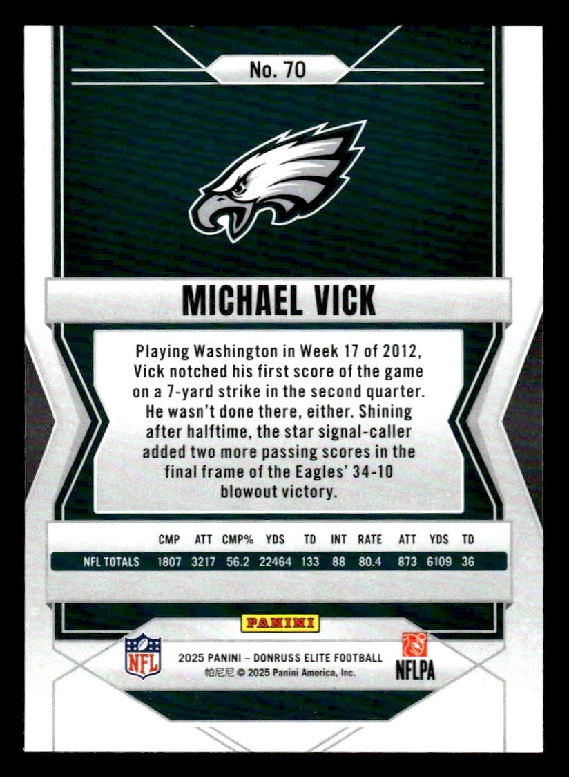This is a sharp example of the 2025 Donruss Elite #70 featuring Michael Vick.