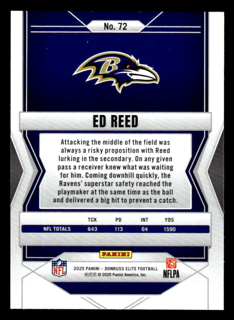 This is a sharp example of the 2025 Donruss Elite #72 featuring Ed Reed.