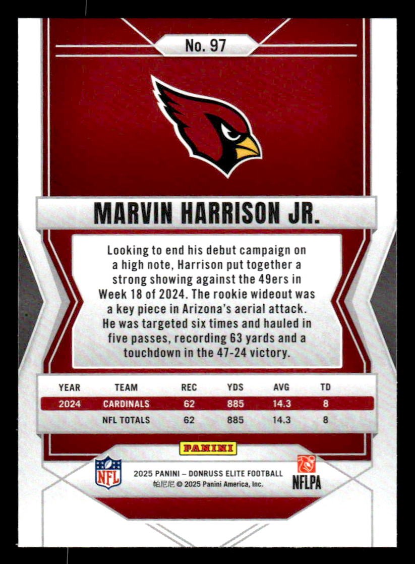 This is a sharp example of the 2025 Donruss Elite #97 featuring Marvin Harrison Jr..