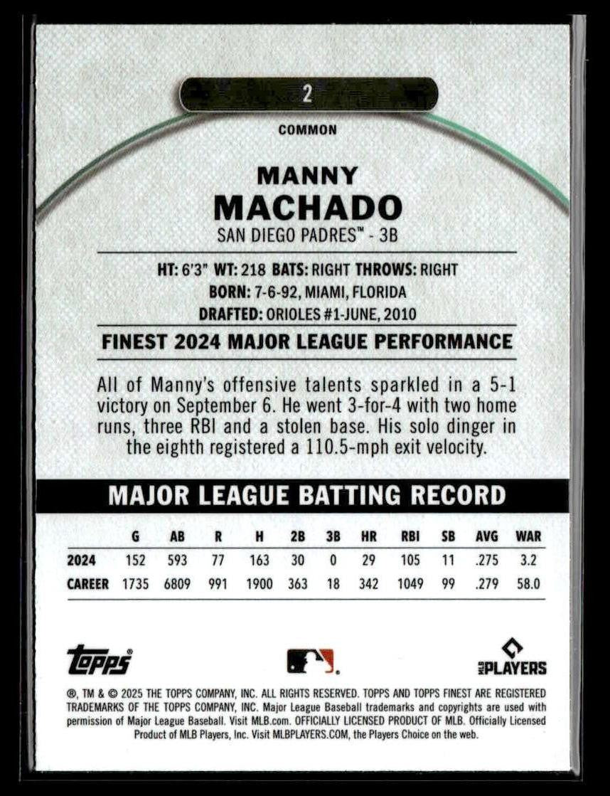 This is a sharp example of the 2025 Finest #2 featuring Manny Machado.