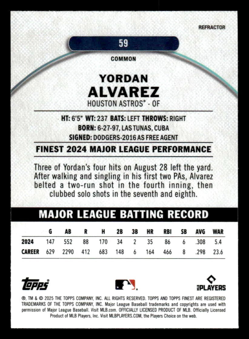 This is a sharp example of the 2025 Finest #59 featuring Yordan Alvarez.