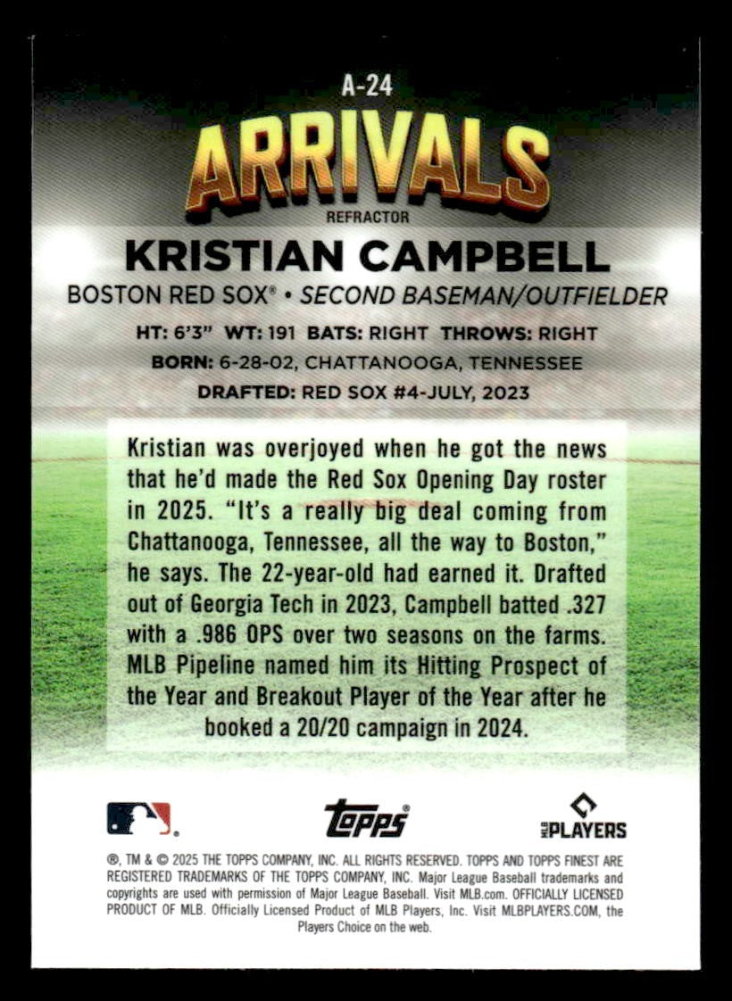 2025 Finest #A-24 Kristian Campbell Arrivals Refractor