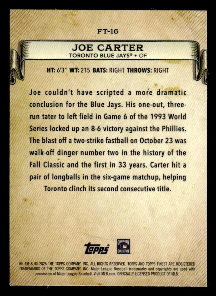 2025 Finest #FT-16 Joe Carter Finest Timelines