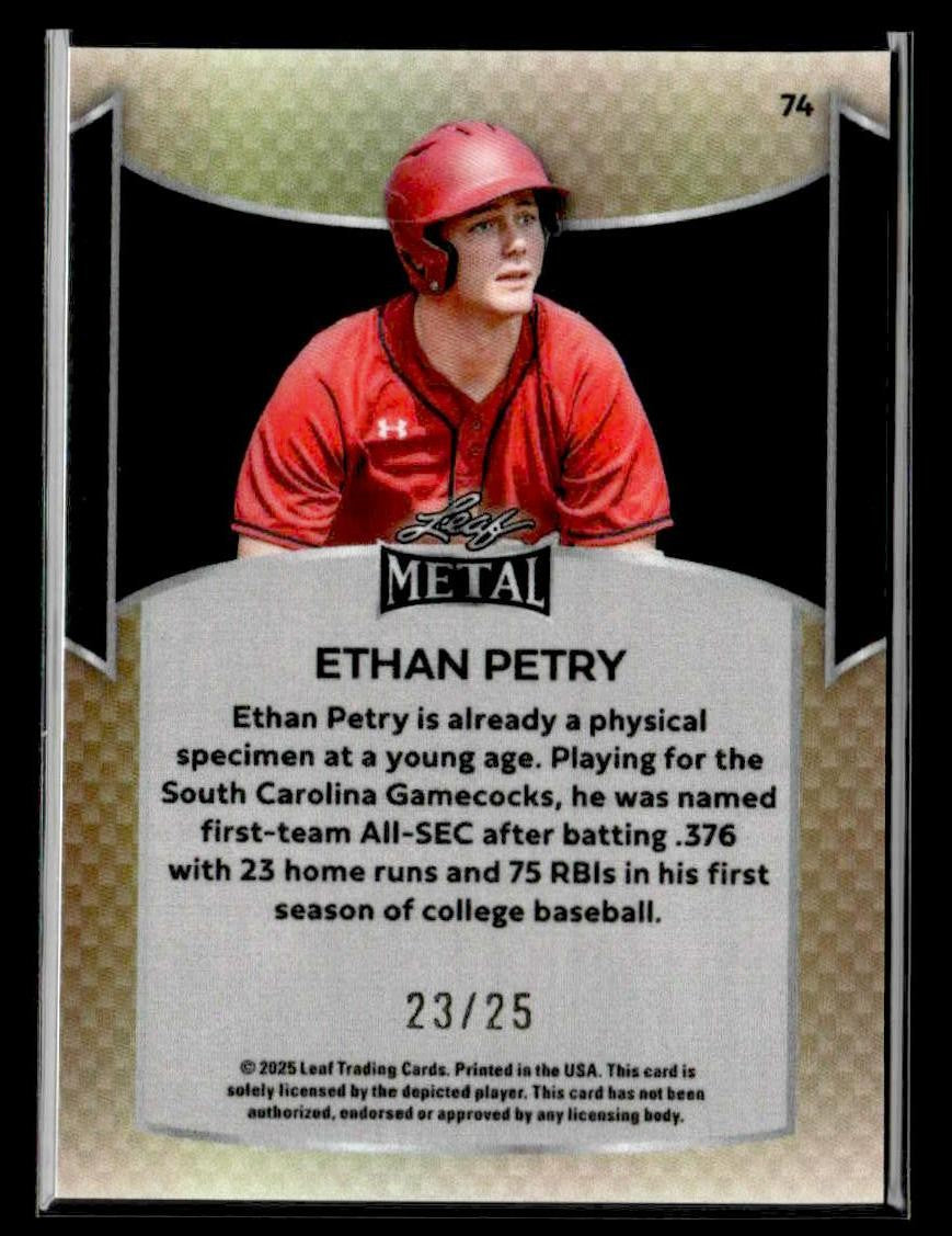This is a sharp example of the 2025 Leaf Metal #74 featuring Ethan Petry.