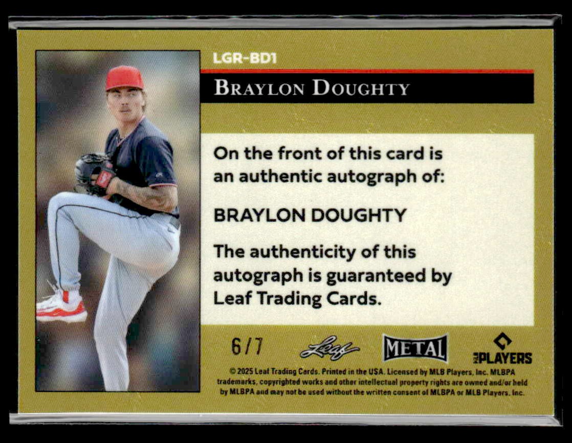 This is a sharp example of the 2025 Leaf Metal #LGR-BD1 featuring Braylon Doughty.