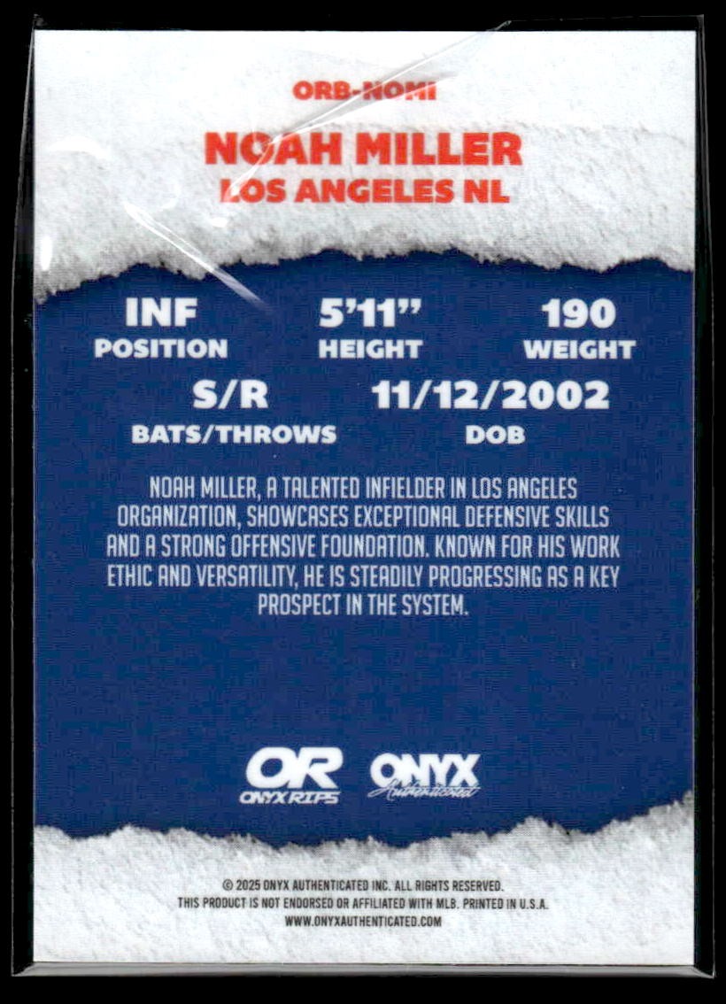 This is a sharp example of the 2025 Onyx Rips #ORB-NOMI featuring Noah Miller.