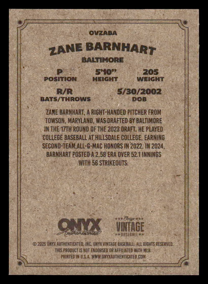 2025 Onyx Vintage #OVZABA Zane Barnhart