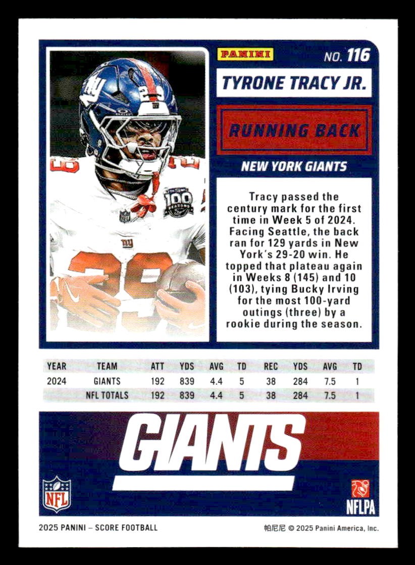 This is a sharp example of the 2025 Score #116 featuring Tyrone Tracy Jr..