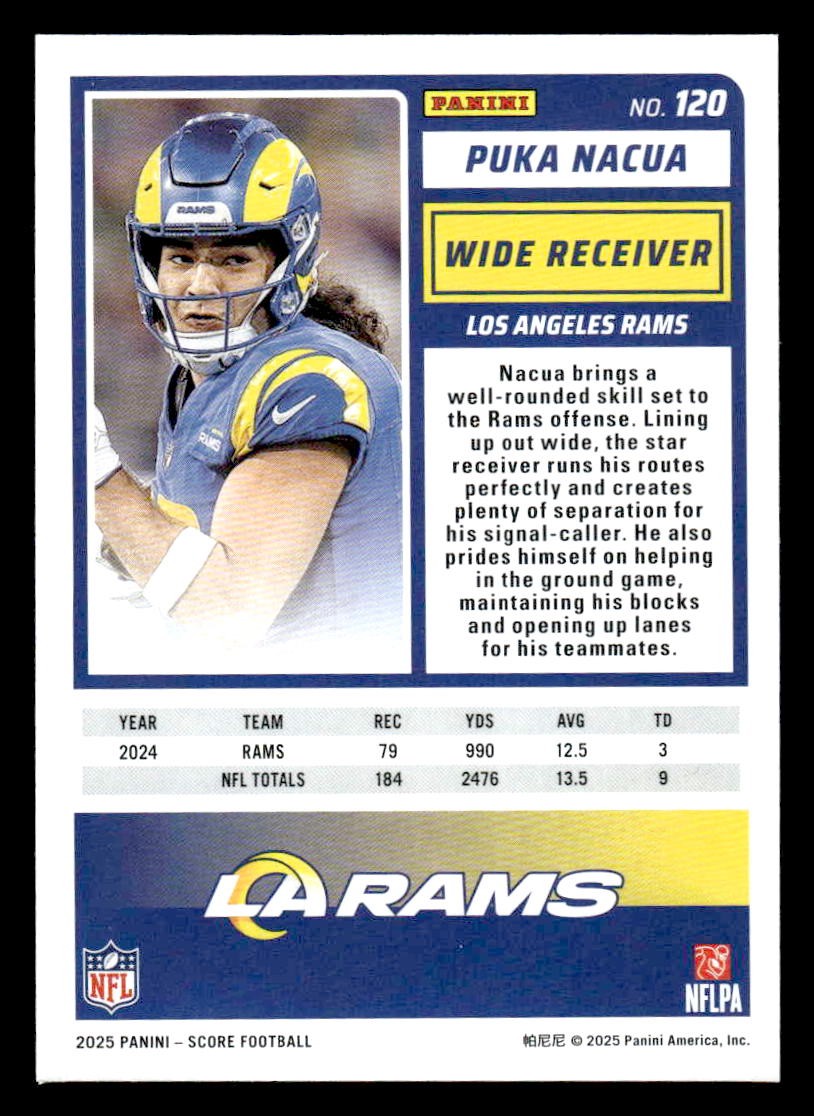 This is a sharp example of the 2025 Score #120 featuring Puka Nacua.