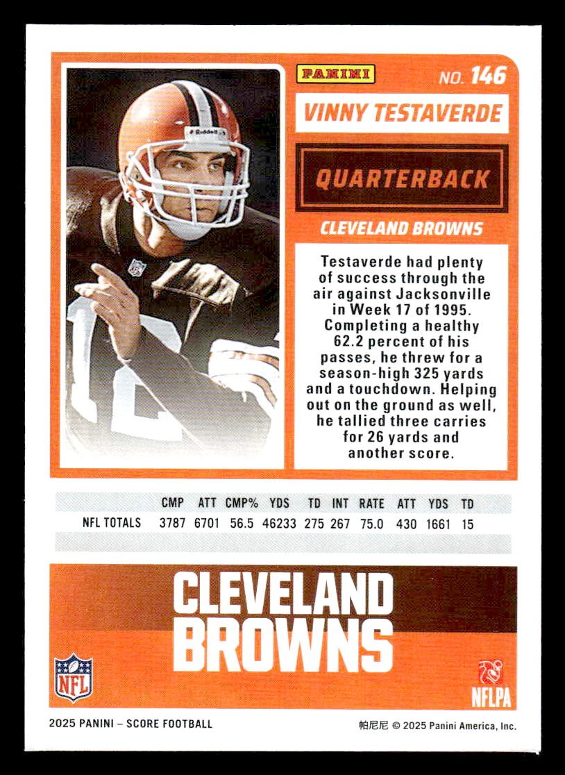 This is a sharp example of the 2025 Score #146 featuring Vinny Testaverde.