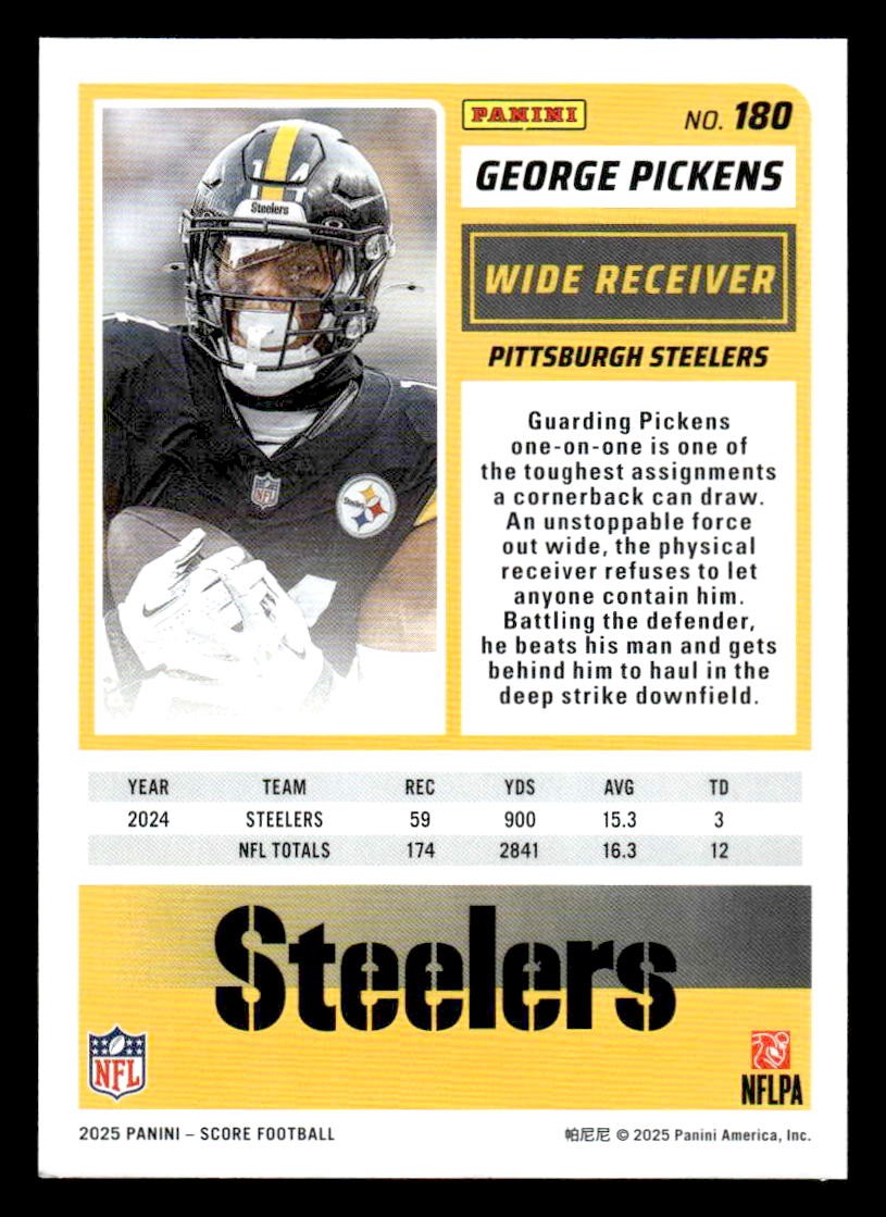 This is a sharp example of the 2025 Score #180 featuring George Pickens.