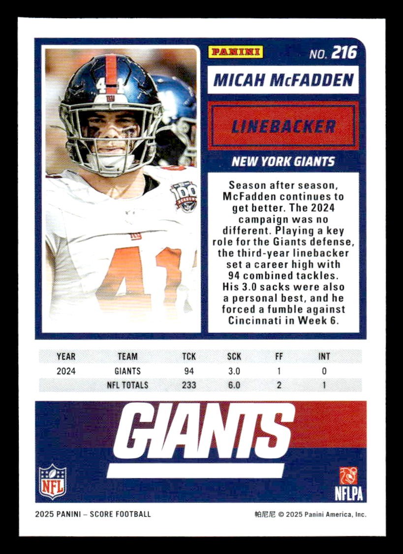This is a sharp example of the 2025 Score #216 featuring Micah McFadden.
