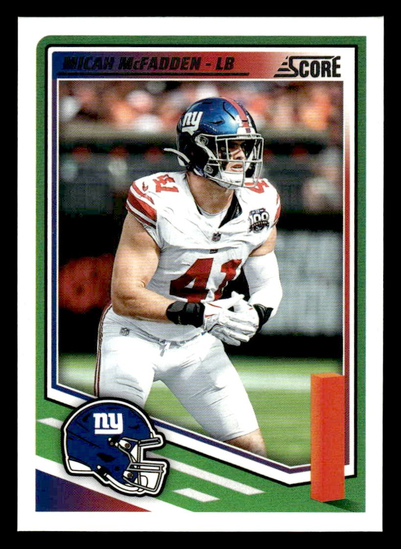 Micah McFadden played for the New York Giants in 2025, and this card is a standout from the Score 2025 Score release. Whether you're chasing rookies, SSPs, or building a premium collection, this card delivers.