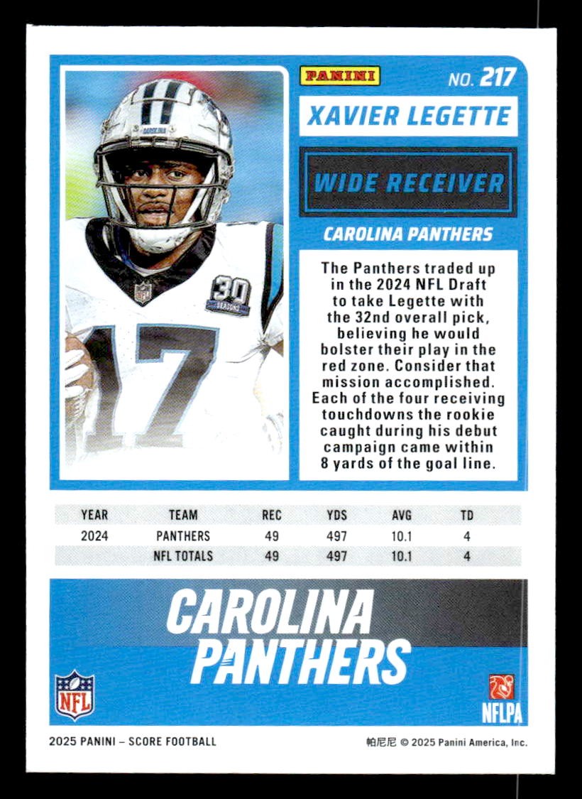 This is a sharp example of the 2025 Score #217 featuring Xavier Legette.