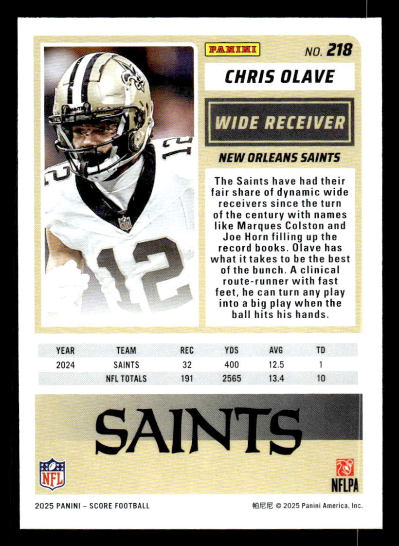This is a sharp example of the 2025 Score #218 featuring Chris Olave.