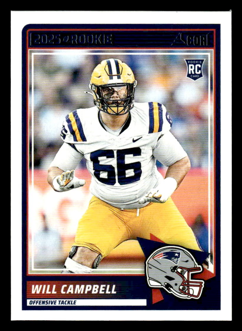 Will Campbell played for the New England Patriots in 2025, and this card is a standout from the Score 2025 Score release. Whether you're chasing rookies, SSPs, or building a premium collection, this card delivers.