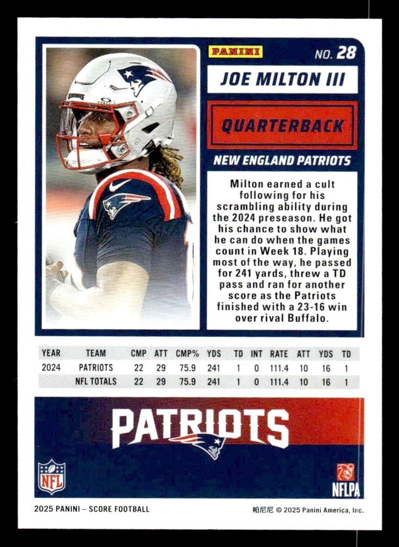 This is a sharp example of the 2025 Score #28 featuring Joe Milton III.