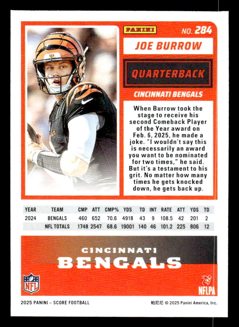 This is a sharp example of the 2025 Score #284 featuring Joe Burrow.