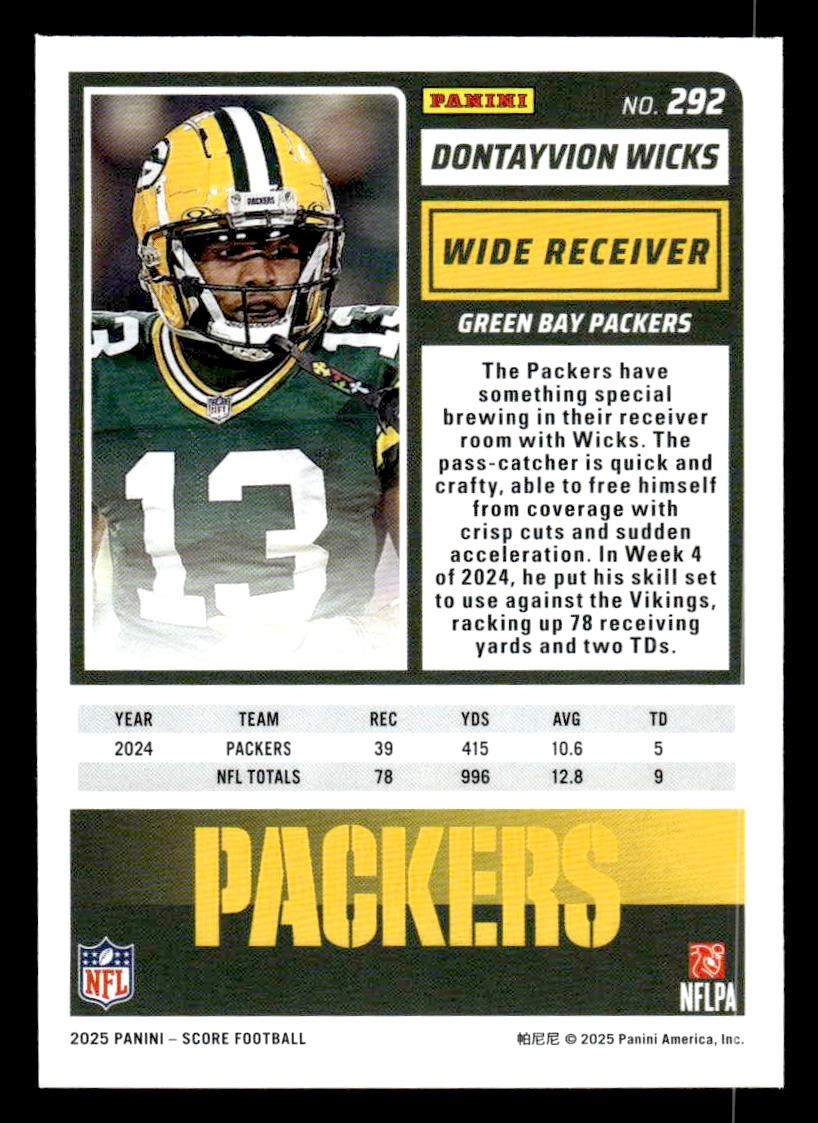 This is a sharp example of the 2025 Score #292 featuring Dontayvion Wicks.