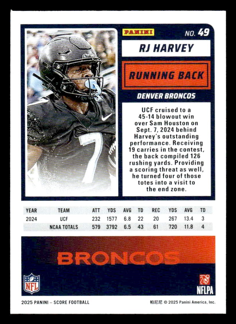 This is a sharp example of the 2025 Score #49 featuring RJ Harvey.