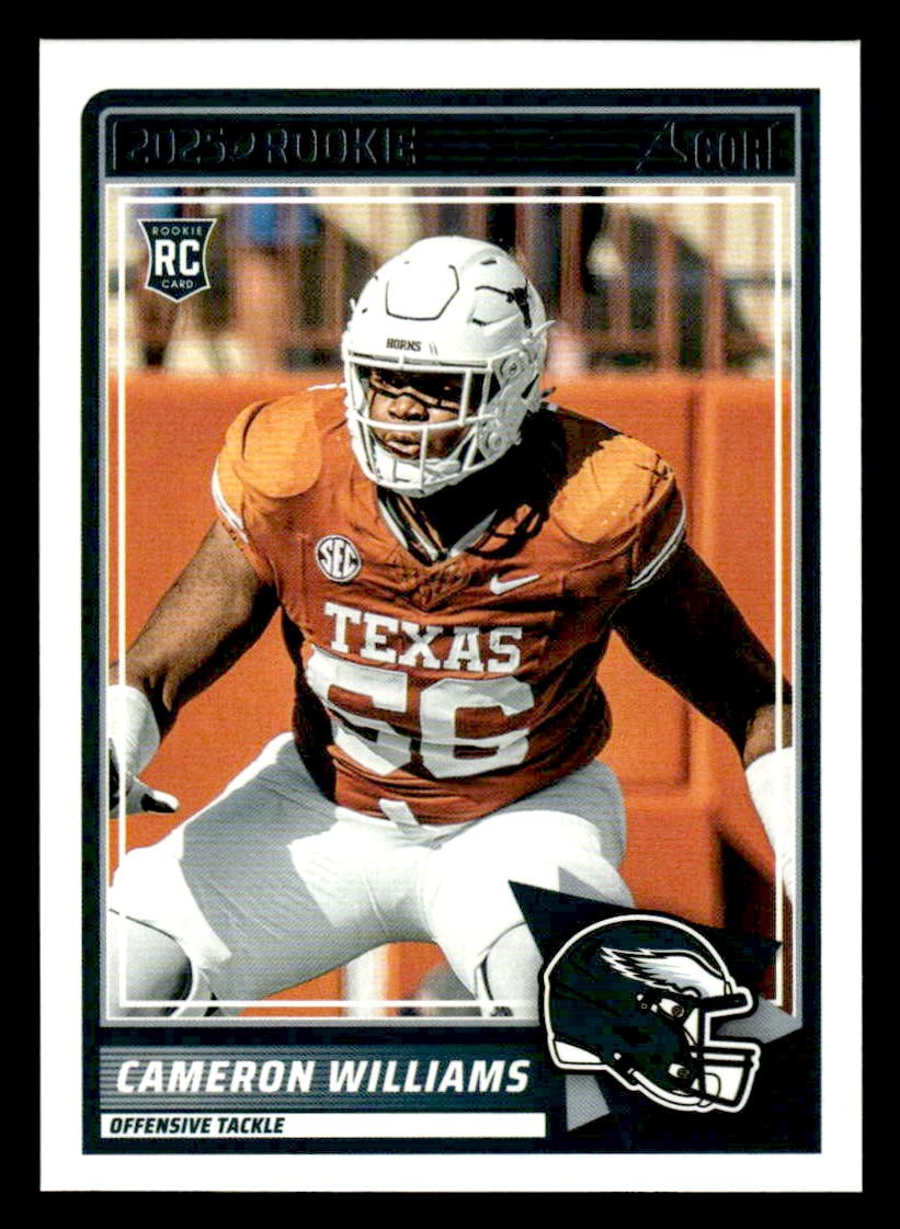 Cameron Williams played for the Philadelphia Eagles in 2025, and this card is a standout from the Score 2025 Score release. Whether you're chasing rookies, SSPs, or building a premium collection, this card delivers.