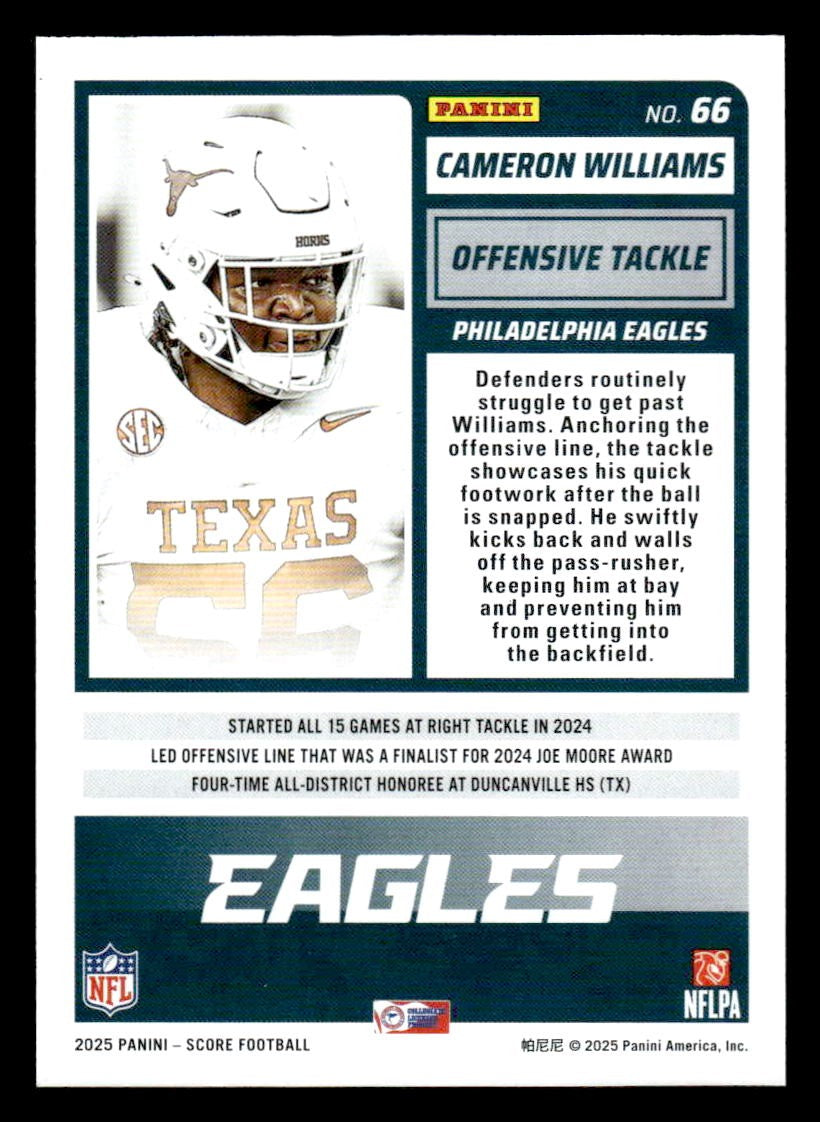 This is a sharp example of the 2025 Score #66 featuring Cameron Williams.