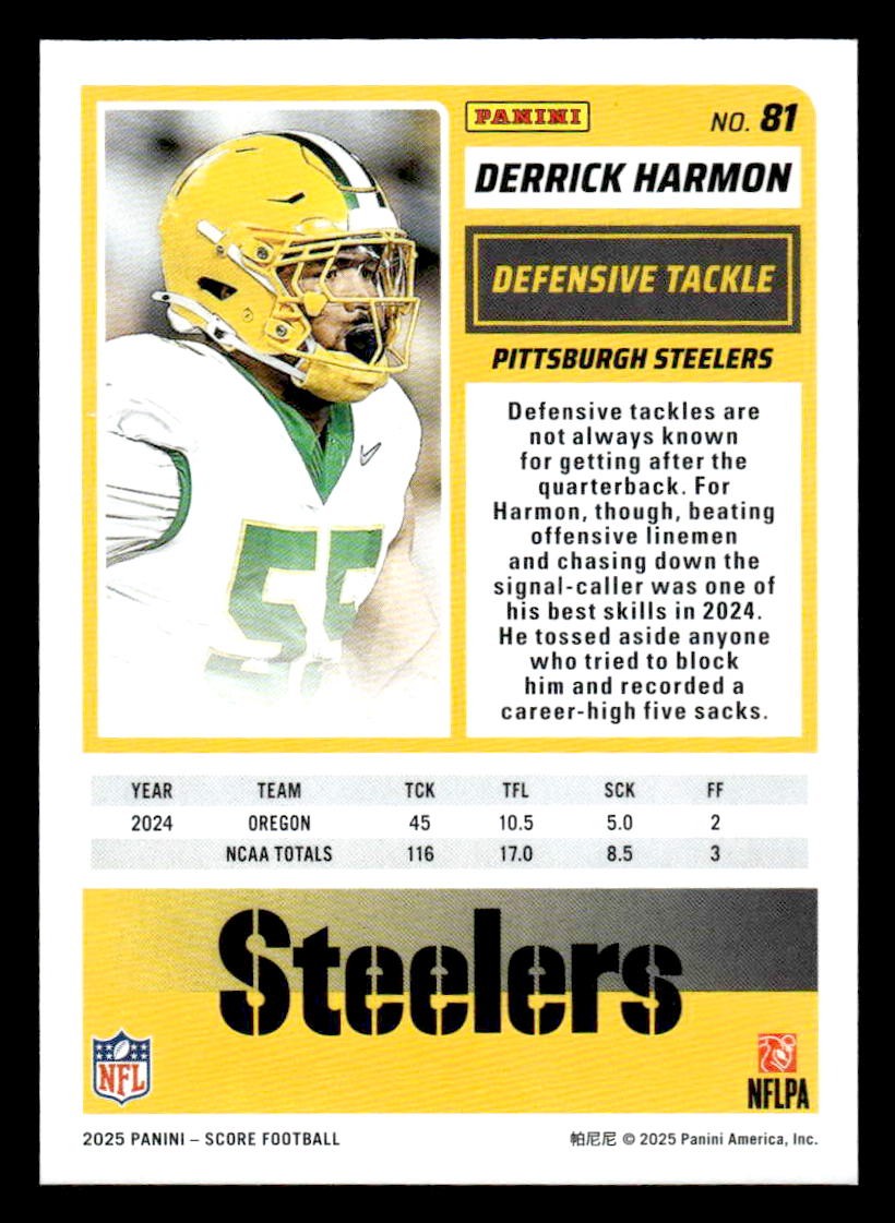 This is a sharp example of the 2025 Score #81 featuring Derrick Harmon.